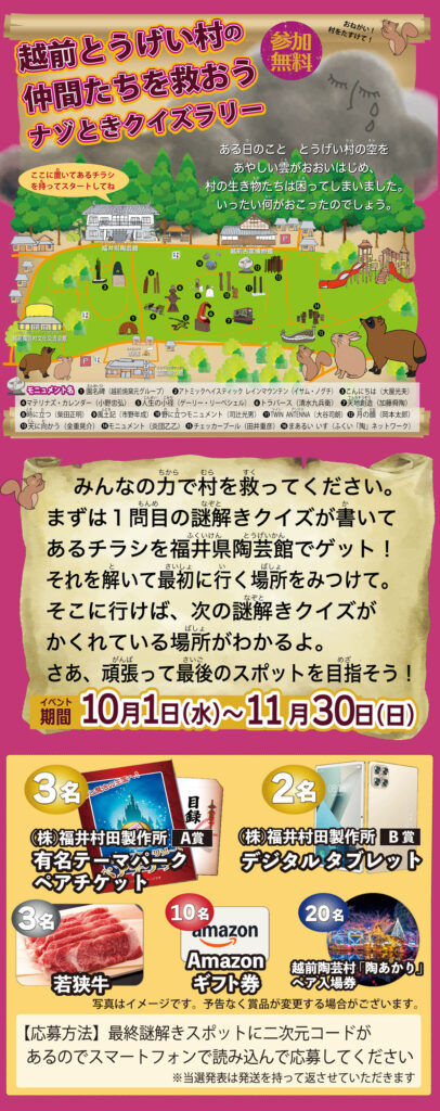 【公式】ナゾときクイズラリー(越前とうげい村の仲間たちを救おう)【参加無料】