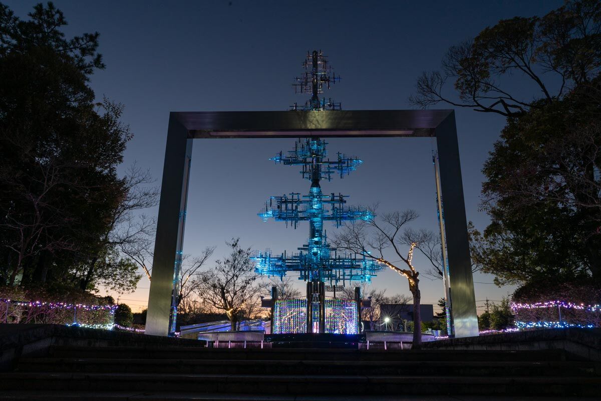 イルミネーションの季節にはその見た目から大きなクリスマスツリーのようにも見えてきます。