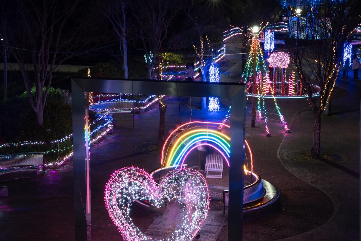 西部緑道のイルミネーションは園内を散策しながらイルミネーションを見ることはもちろん可能だが、上からその全貌を見ることもできちゃいます!